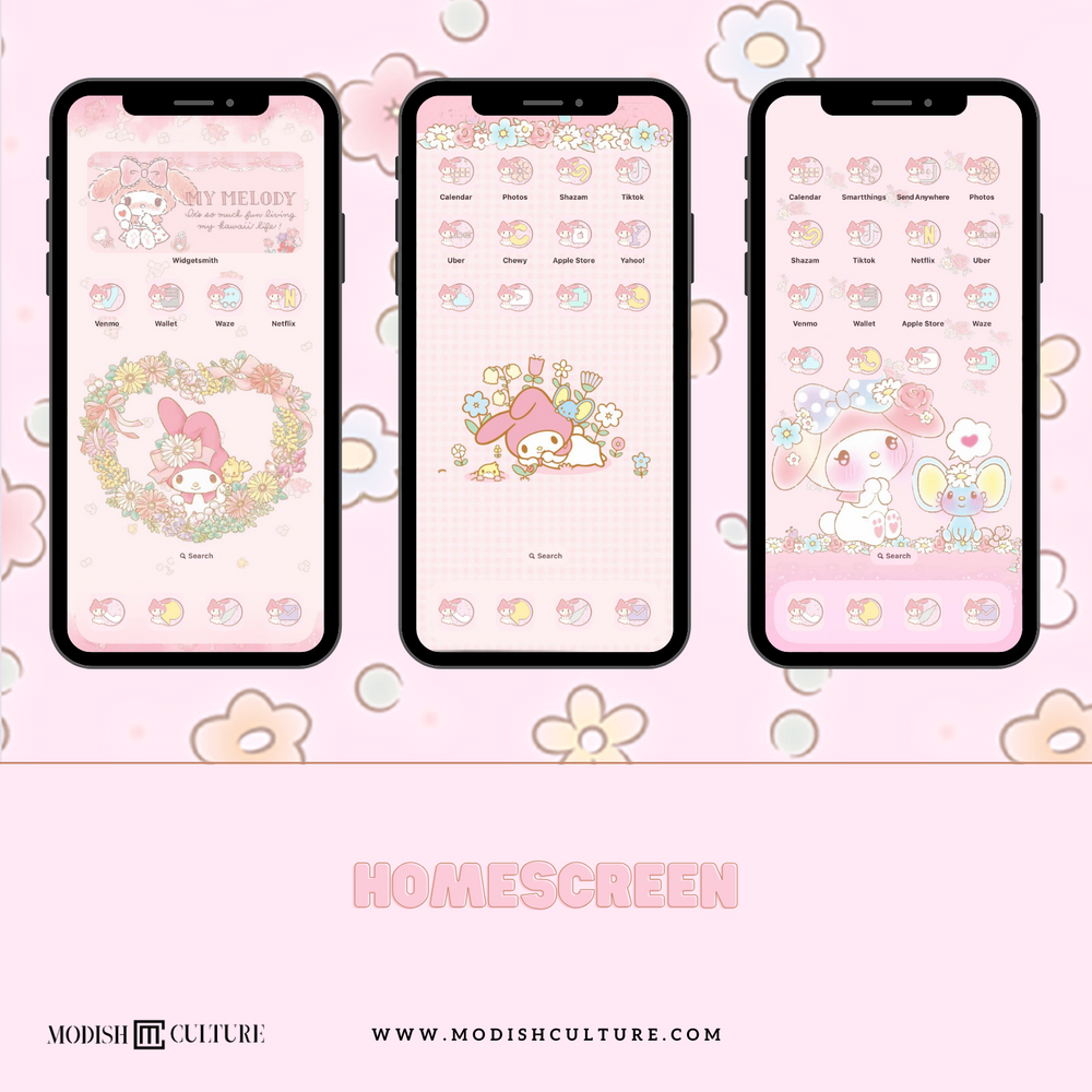 Immerse yourself in the soothing hues of pink and pastels with our meticulously designed app icons. My Melody's signature charm comes to life on your home screen.