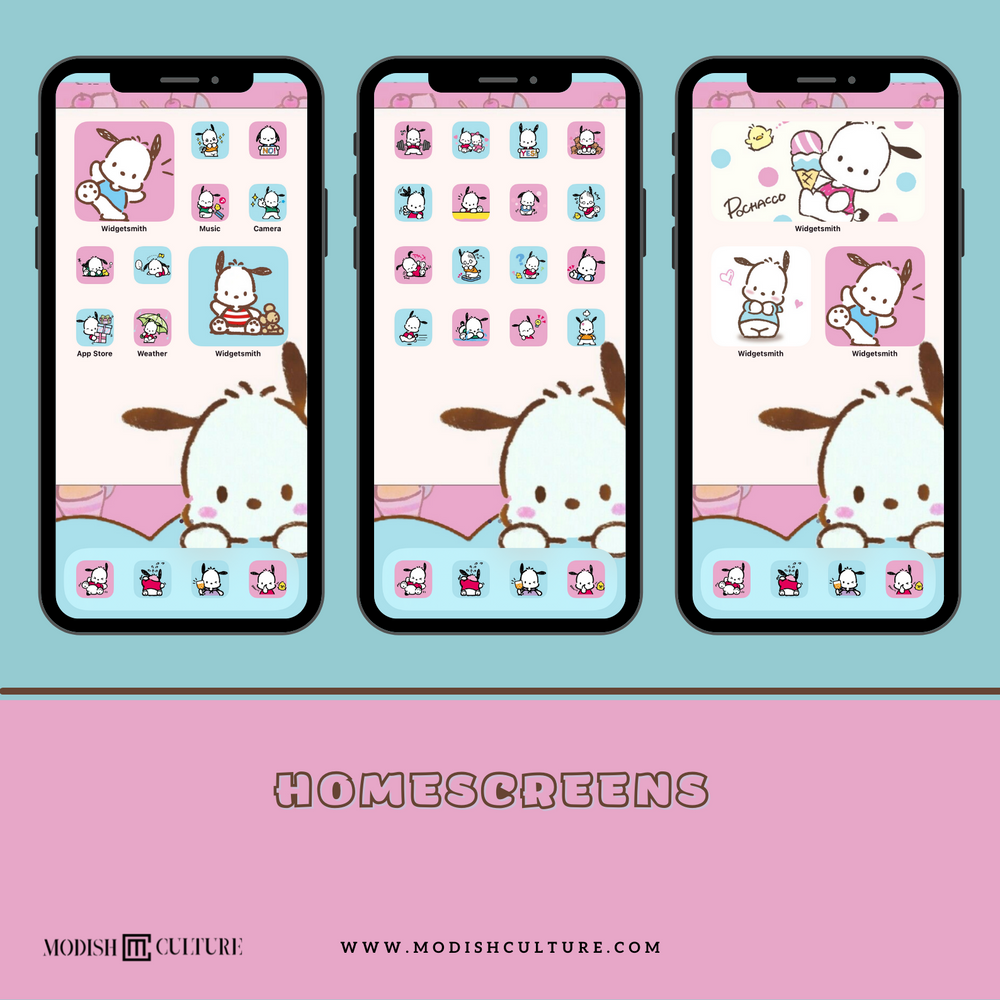 This Kawaii blue and pink puppy Pochacco character theme is ready for use on your iPhone homescreen running ios14 and above. This awesome theme includes: